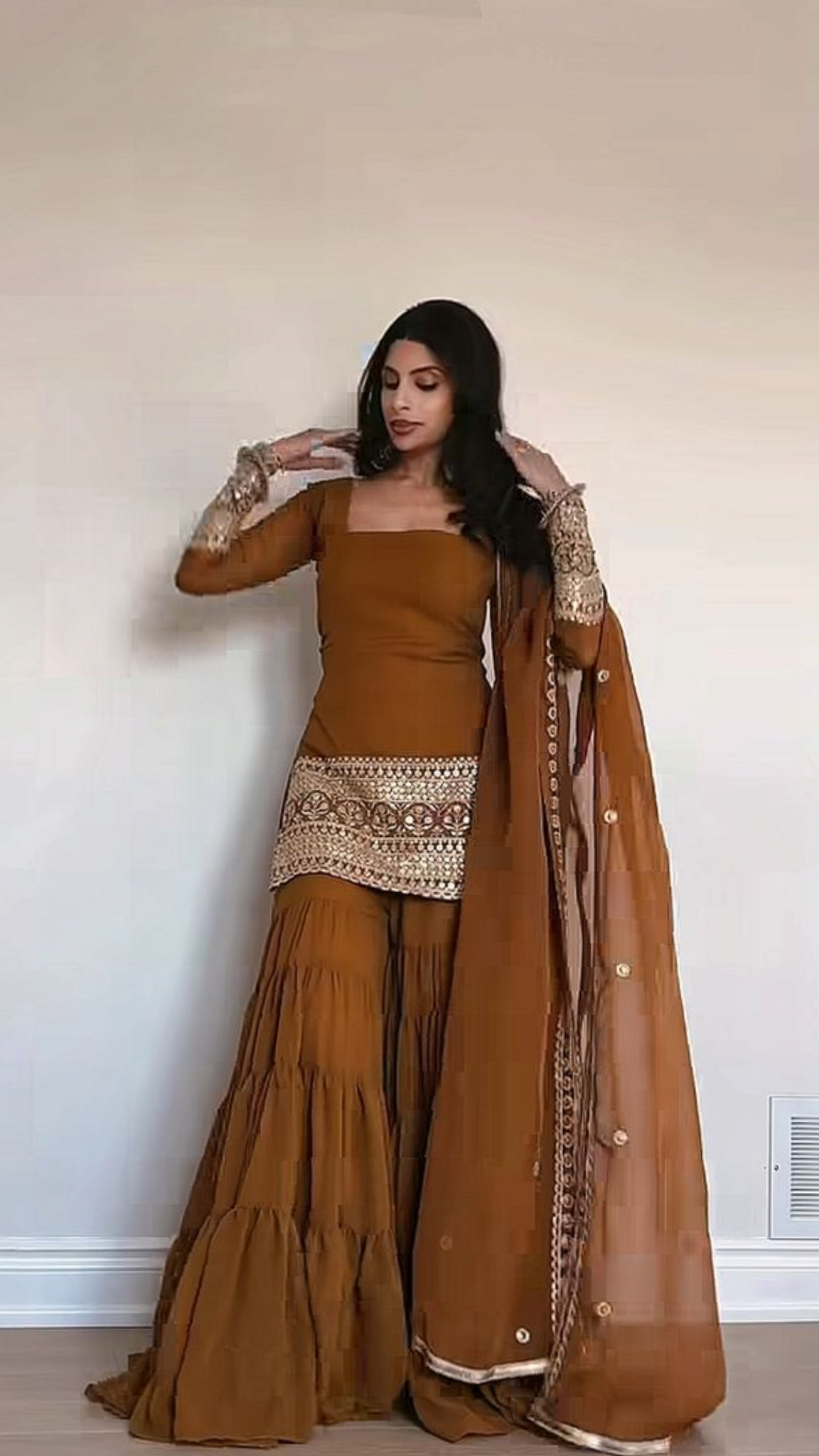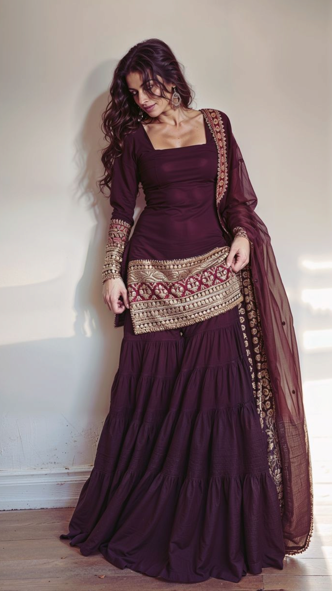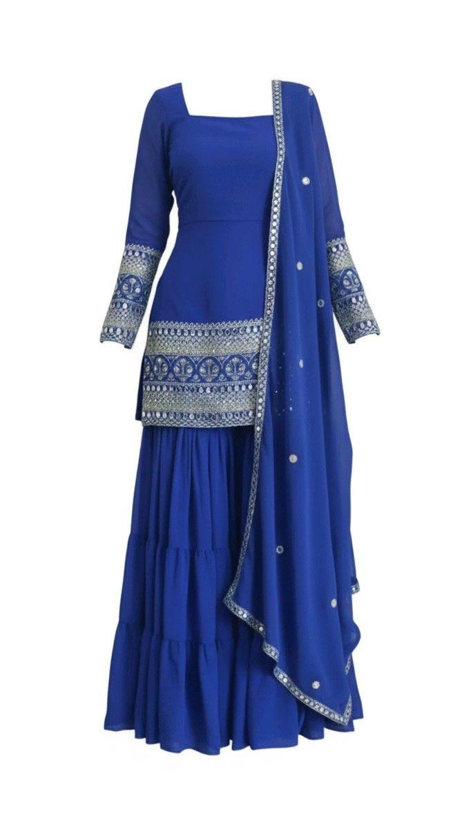 Royal Blue 3-Piece Embroidered Kurti Sharara & Dupatta Set for Women
