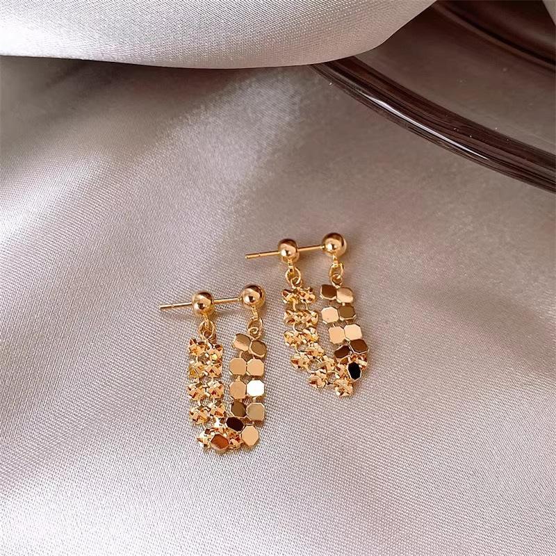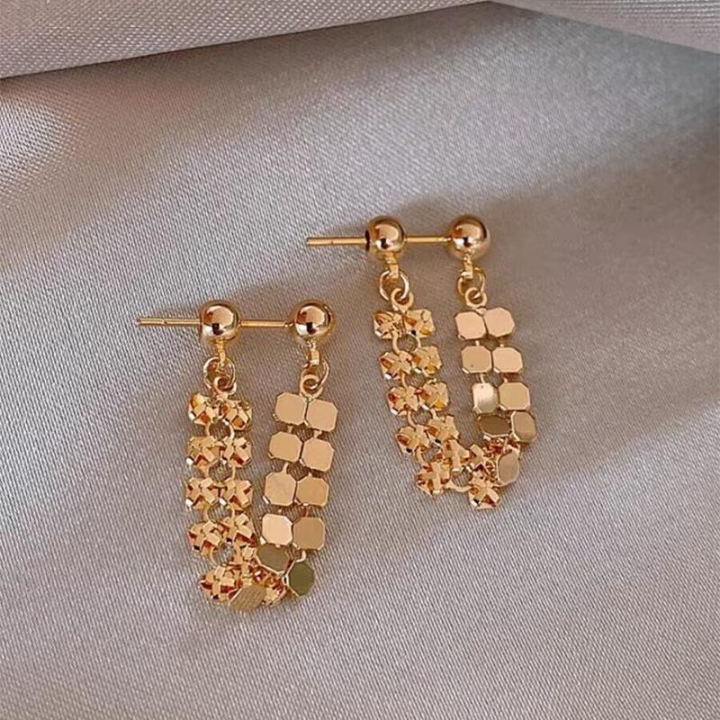 "2023 Fashion Shiny Gold Geometric Tassel Earrings for Women