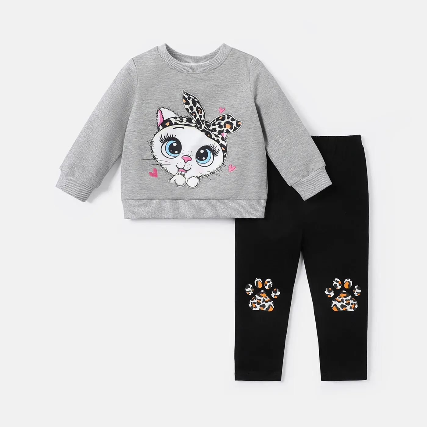 Baby Girl Cat Embroidered Sweatshirt & Pants Set