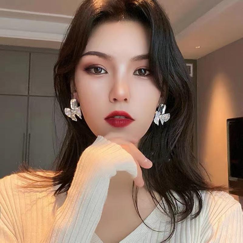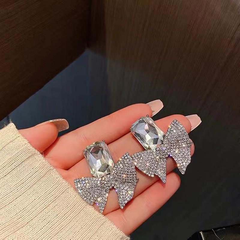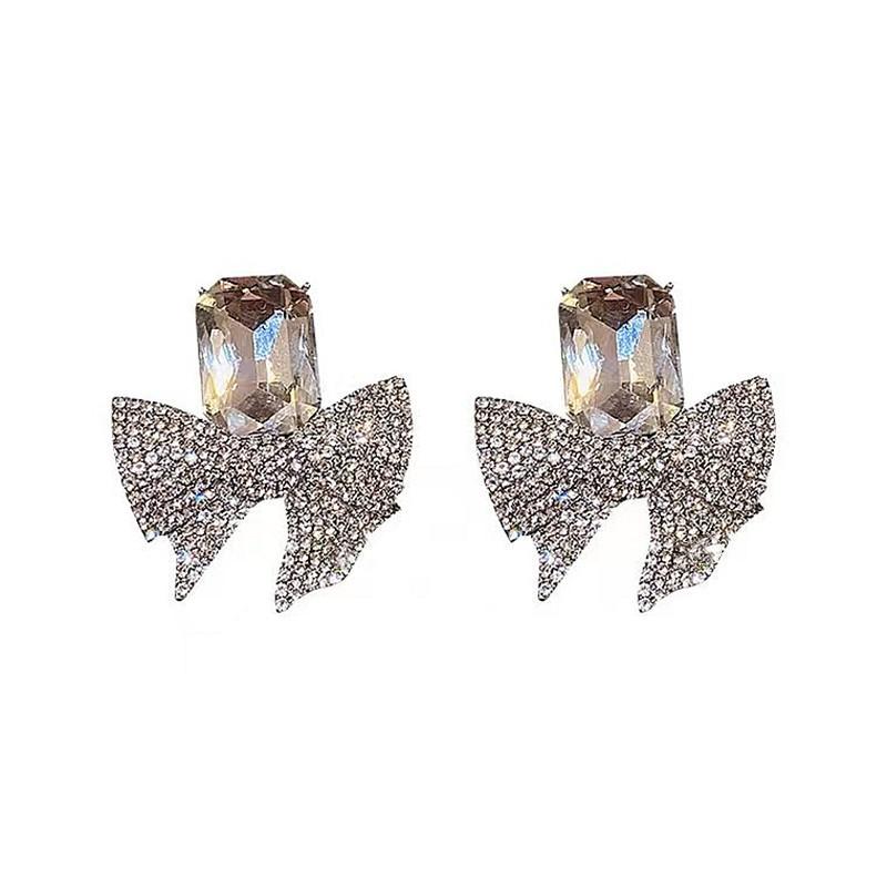 Exaggerated Mosaic Rhinestone Bow Earrings