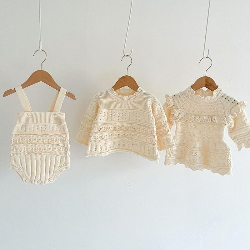 Korean Style Baby Girl Knitted Romper & Dress Set