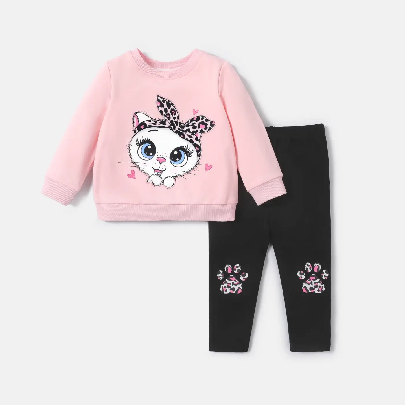 Baby Girl Cat Embroidered Sweatshirt & Pants Set